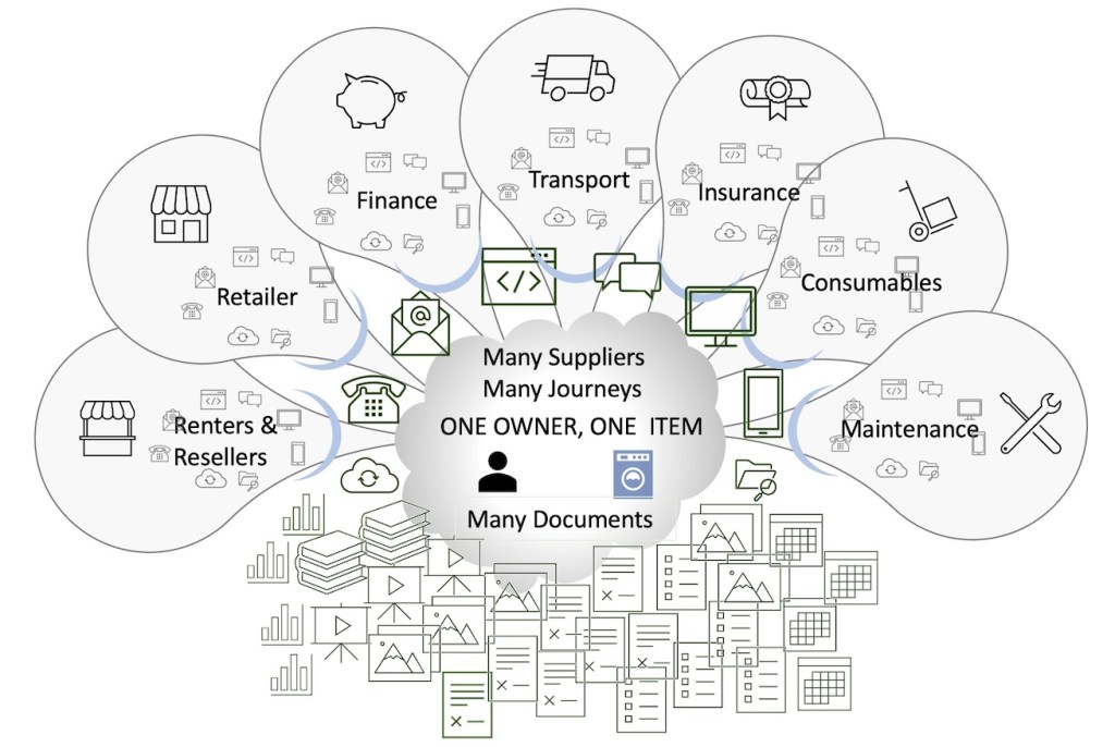 The data for mass-produced items are scattered across supply, distribution, retail and service chains. Non-mass-produced item data is scattered across retail records, current and past owners, historical studies and informal interest groups. The common thread in both cases is the custody-oriented view of the data – who owns & services the item rather than the unique journey of the item through the hands of many interested stakeholders across many events.